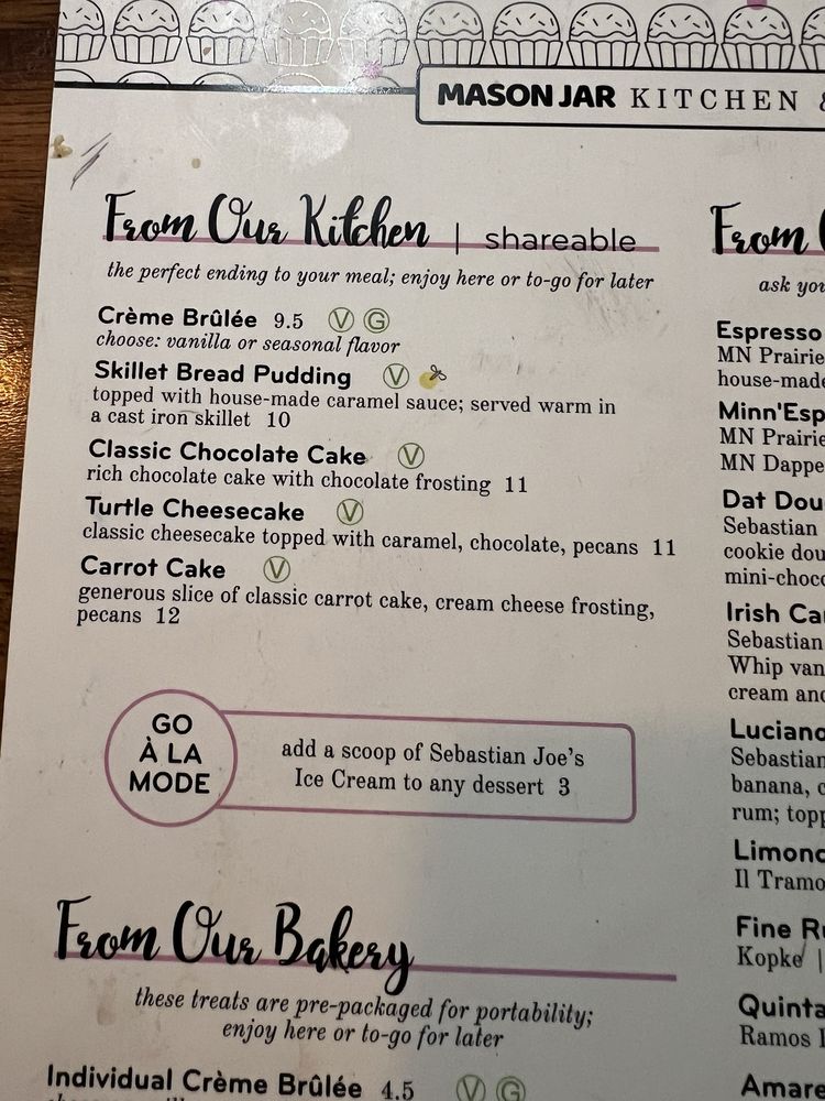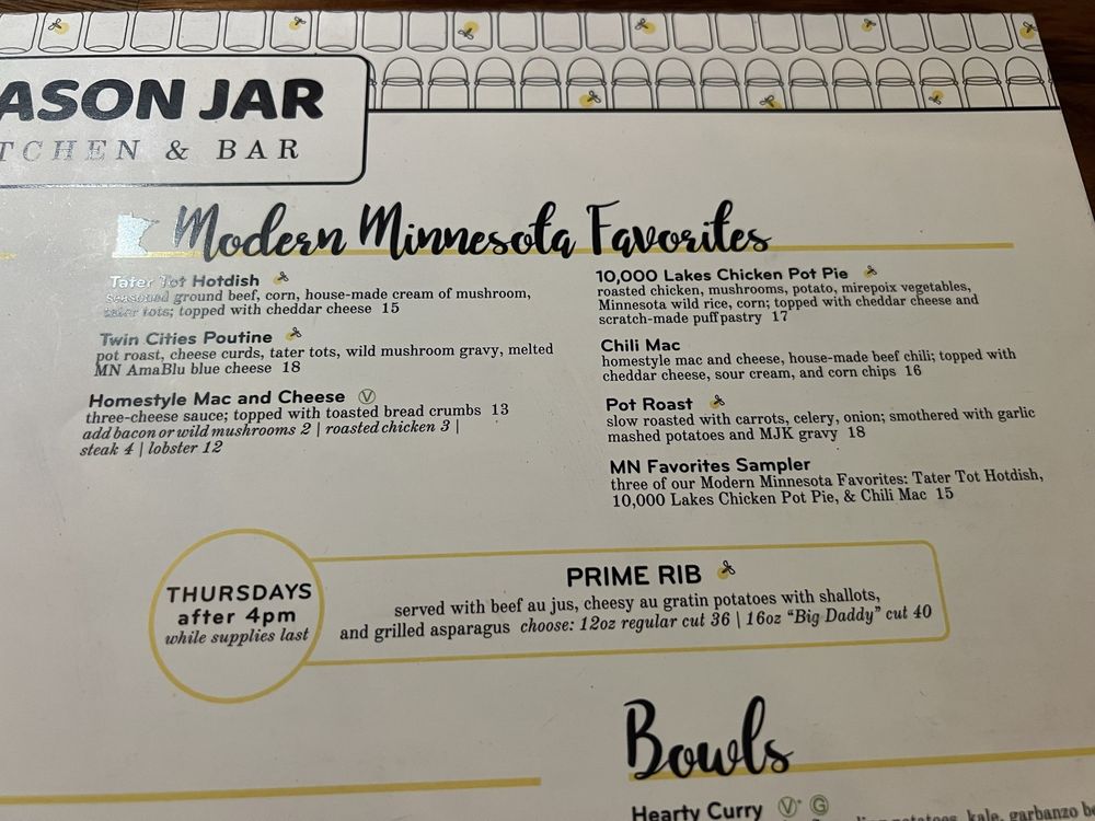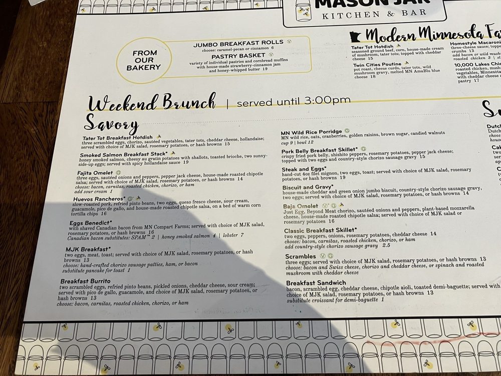 Mason Jar Kitchen & Bar in Eagan, MN offers a unique dining experience with a focus on New American cuisine, seafood, and breakfast & brunch options. The menu features a variety of delicious dishes, such as the Atlantic Salmon pan-seared with lobster risotto and grilled baby bok choy, and the Beer Can Chicken oven-roasted with MN Bauhaus Guavatron Gose. With vegan and vegetarian options available, this restaurant caters to a diverse range of dietary preferences. The cozy yet stylish setting, along with amenities like outdoor seating, happy hour specials, and free Wi-Fi, make it a great choice for all occasions. Offering a blend of comfort food and elevated flavors, Mason Jar Kitchen & Bar promises a memorable dining experience for guests.
